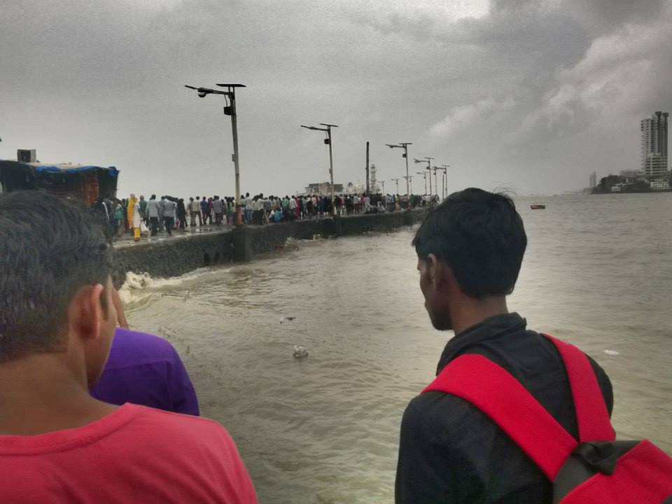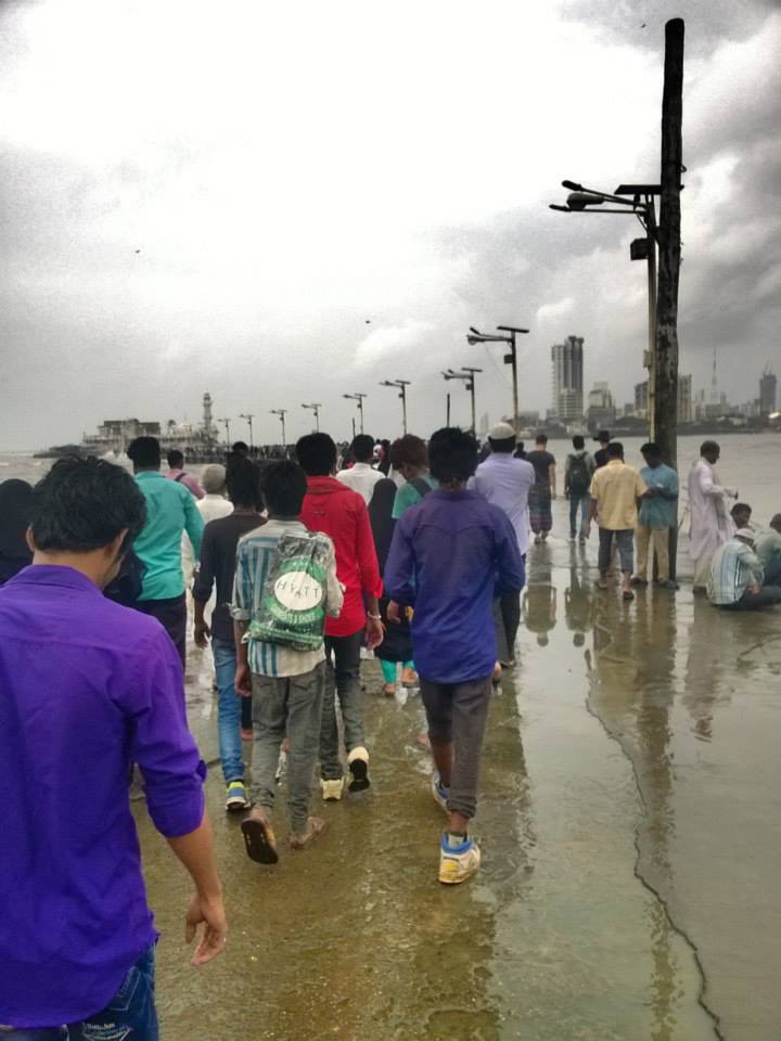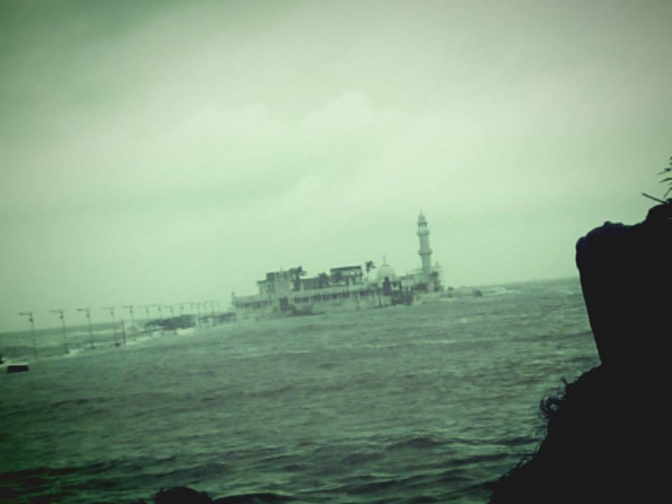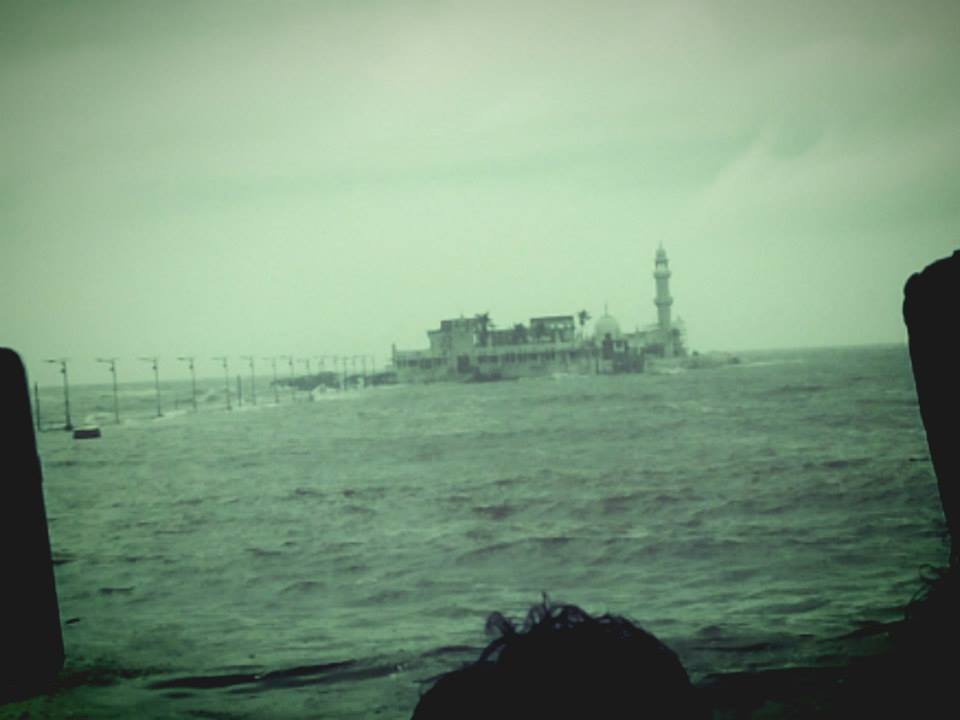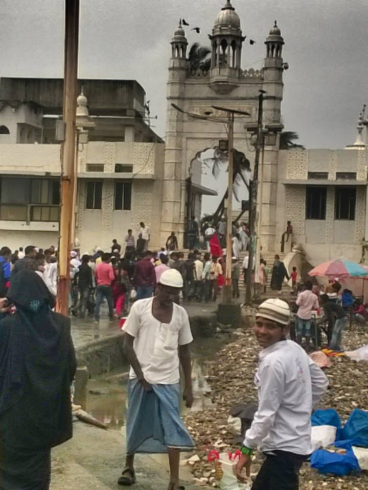 The dargah is located off an islet in the Worli area of Mumbai. There is a path that connects the dargah to the main land through the sea. The 1 kilometer path does not have a railing. During high tides, the causeway is closed and you cannot access the dargah. The rain gods had a field day on that particular day. It had rained heavily early morning so when I reached, unfortunately, the causeway was closed.
